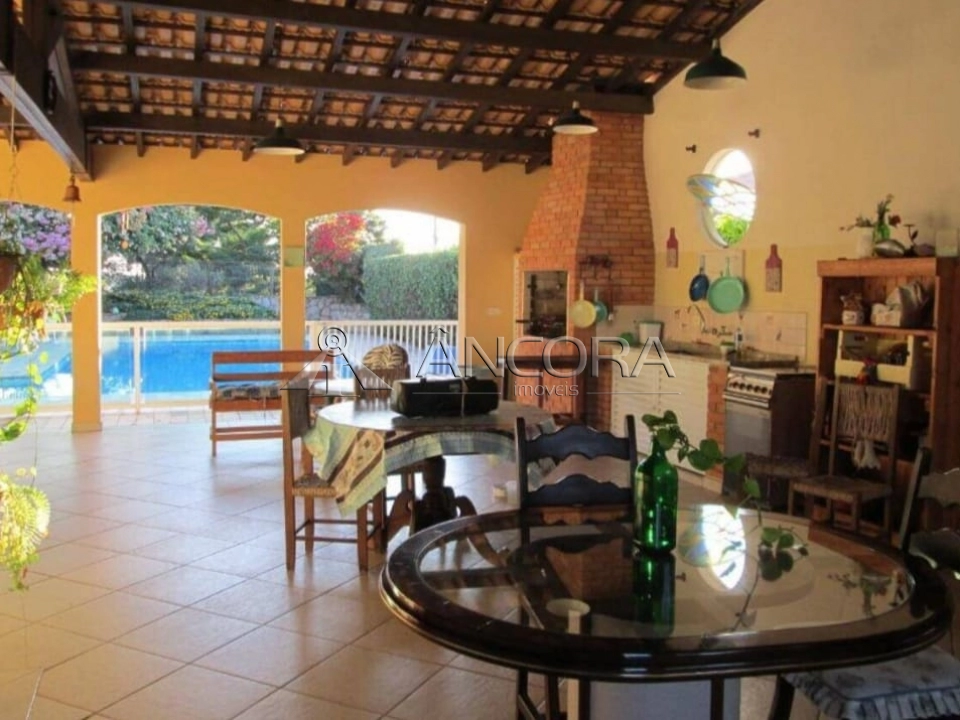 Varanda, área ampla gourmet com churrasqueira, sauna, piscina, campo de futebol, casa de hospede, gramado, paisagismo, etc.